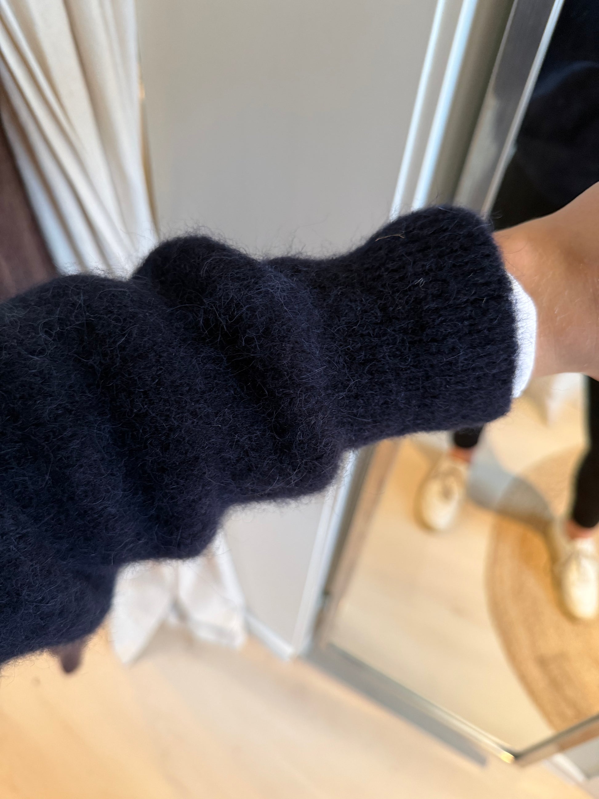 Baby-Alpaka Strickjacke Rundhals marineblau