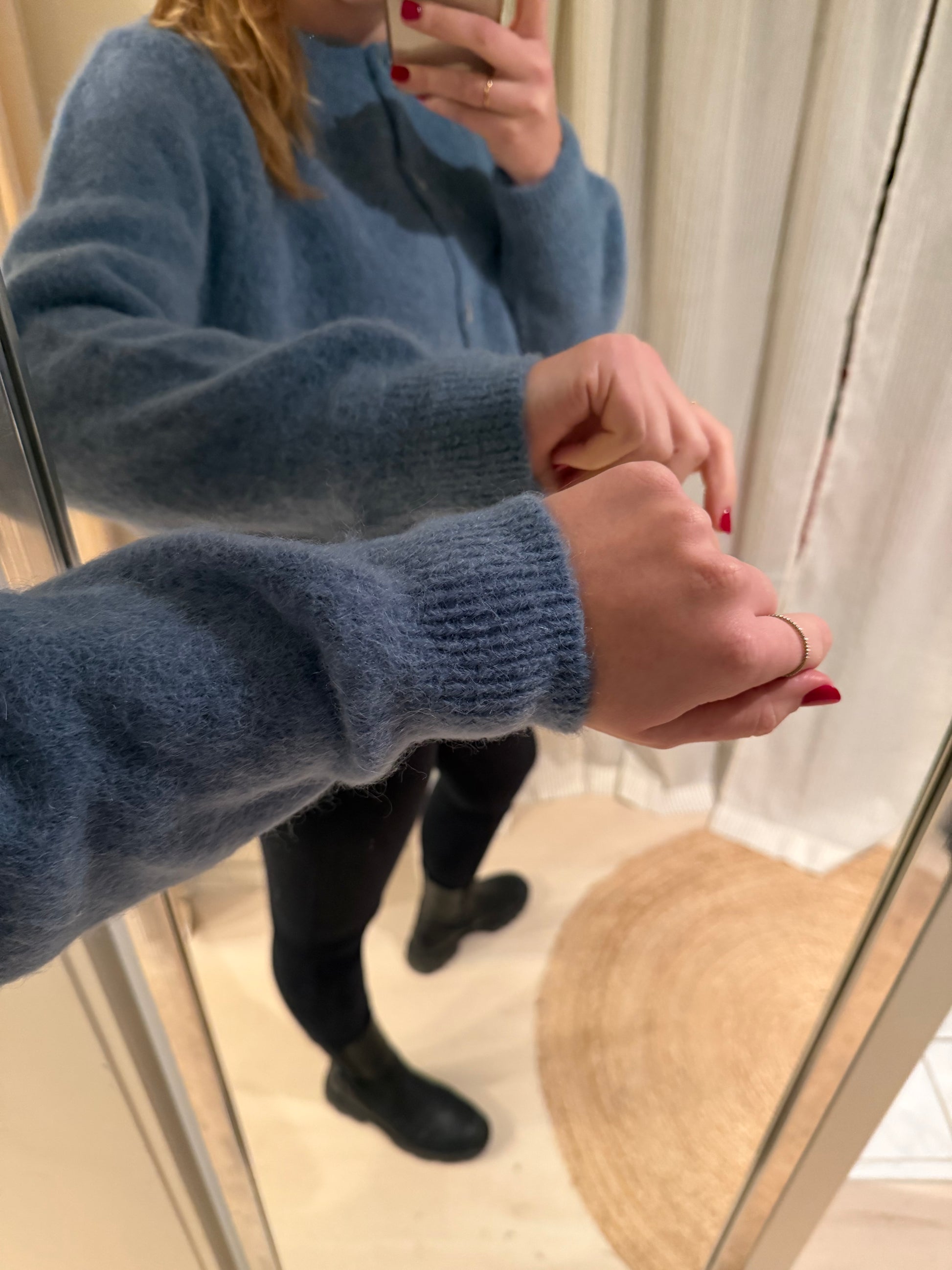 Baby-Alpaka Strickjacke Rundhals jeansblau