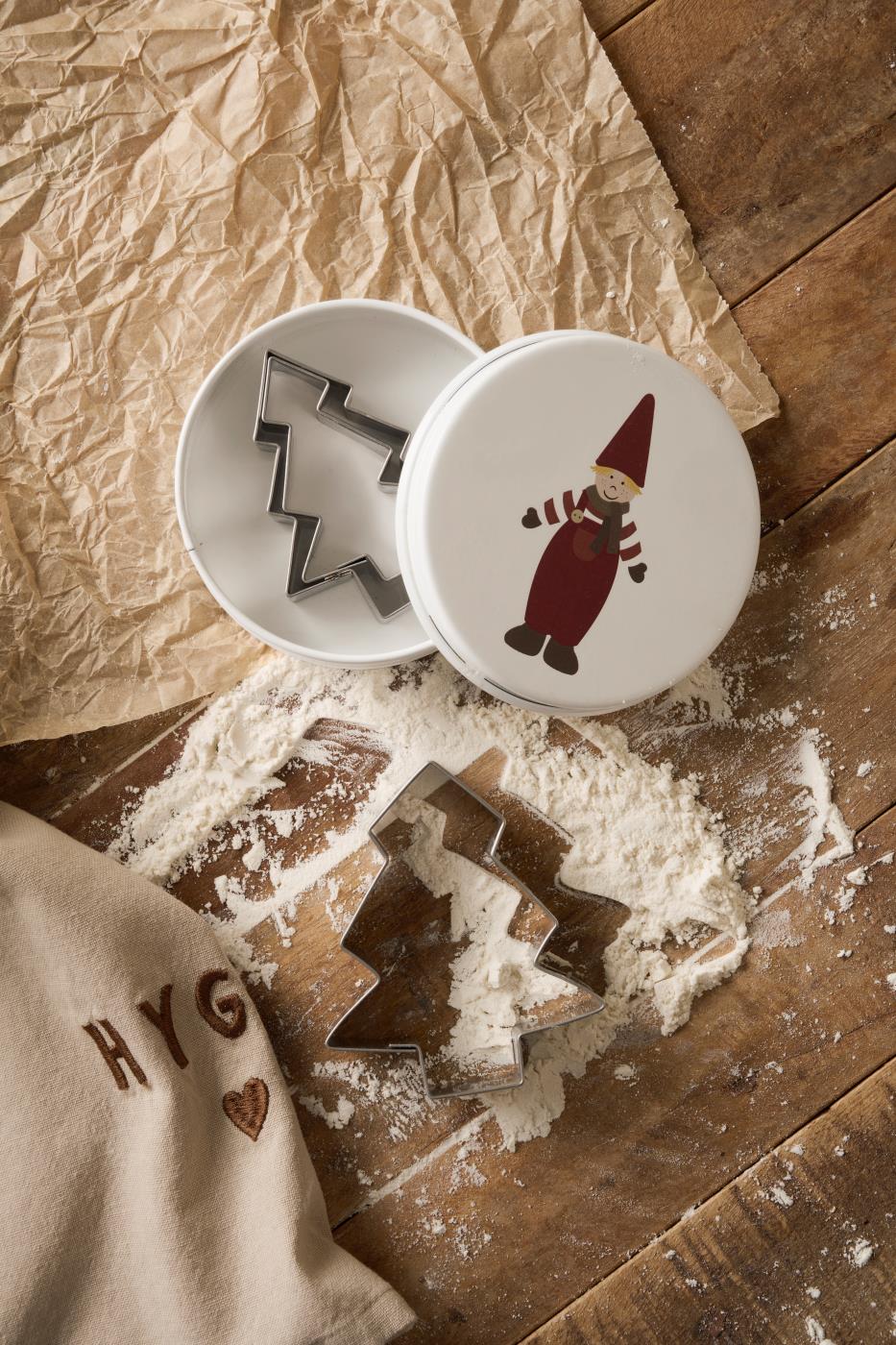 Dose mit drei Tannenbaum-Keksausstechern "Wichtelmännchen"