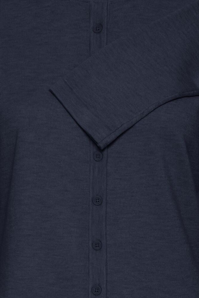 Cardigan mit Knopfleiste, geradem Schnitt und Rundhals. Klare Linien, lange Ärmel und eine feine Oberflächenstruktur prägen den Look.
