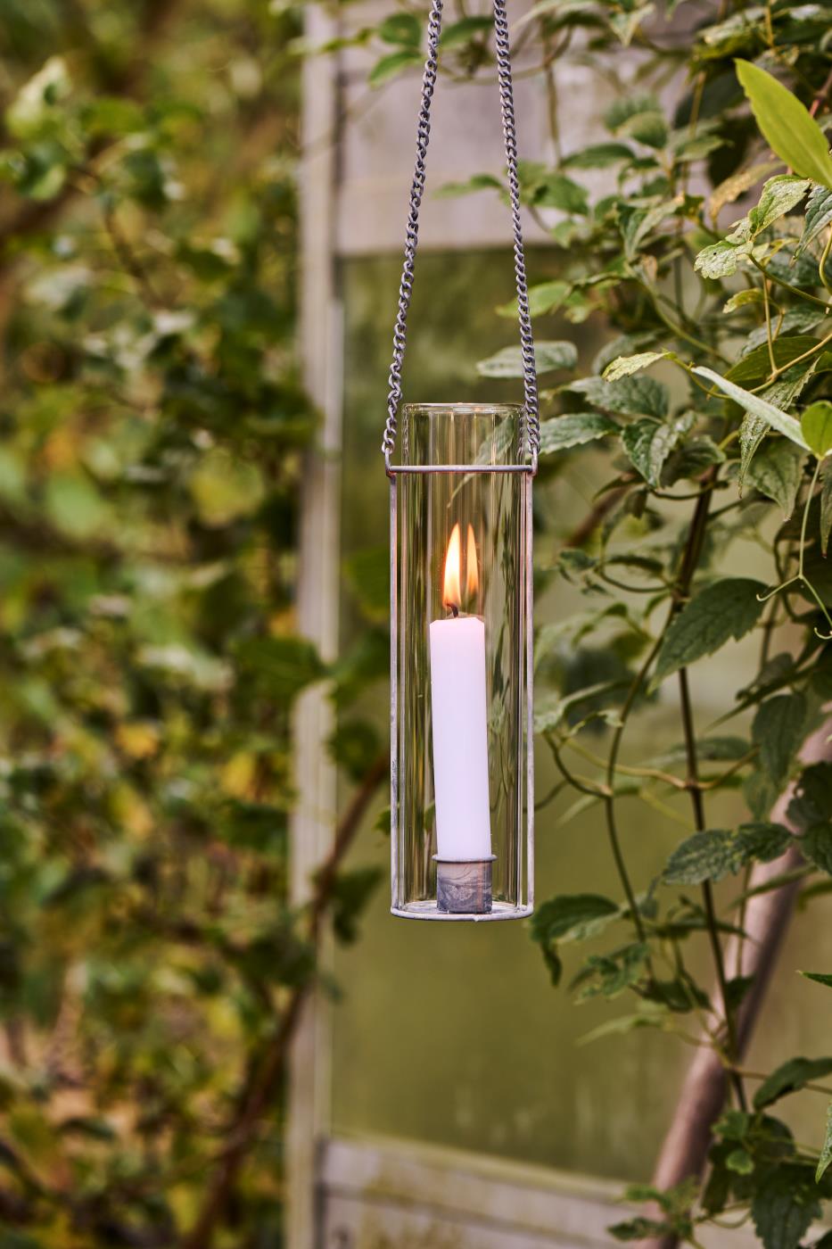 Kerzenhalter f/2,2 cm Kerze m/Glas und Kette