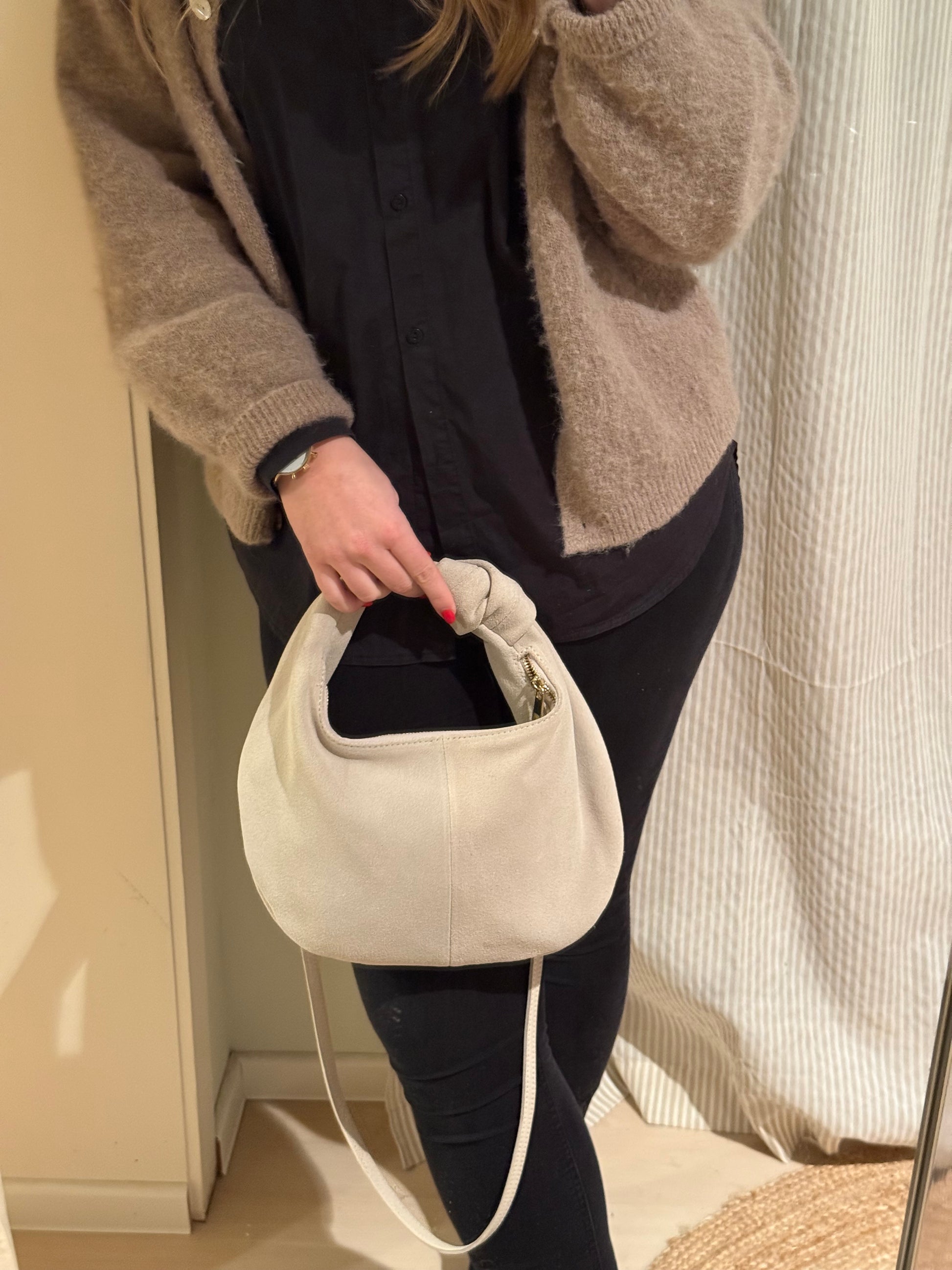 unsere Bestseller Knoten-Tasche findest du hier in der grösseren Größe in einem wunderschönen hellen beige Ton.