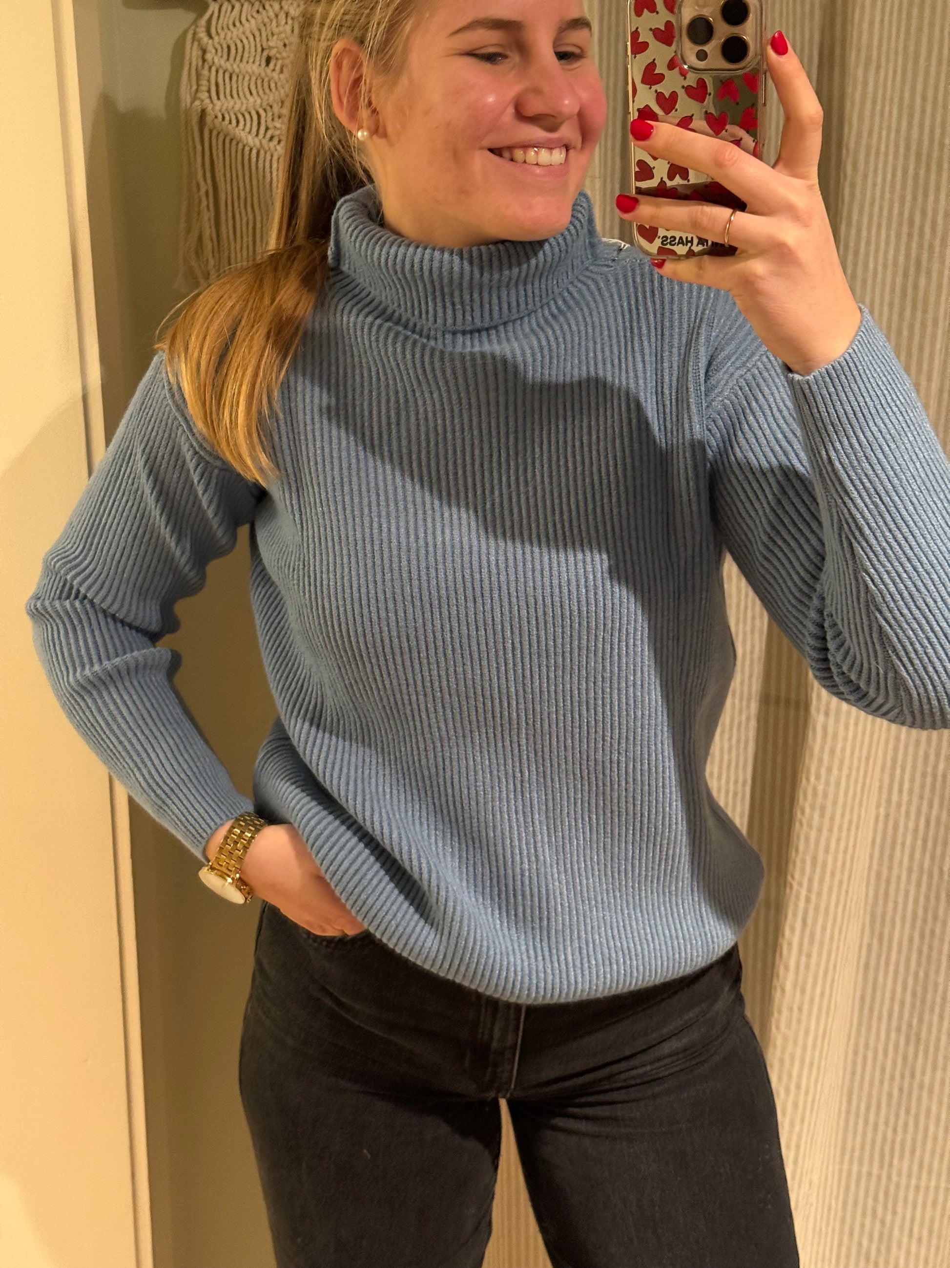 Strick-Rollkragen blau