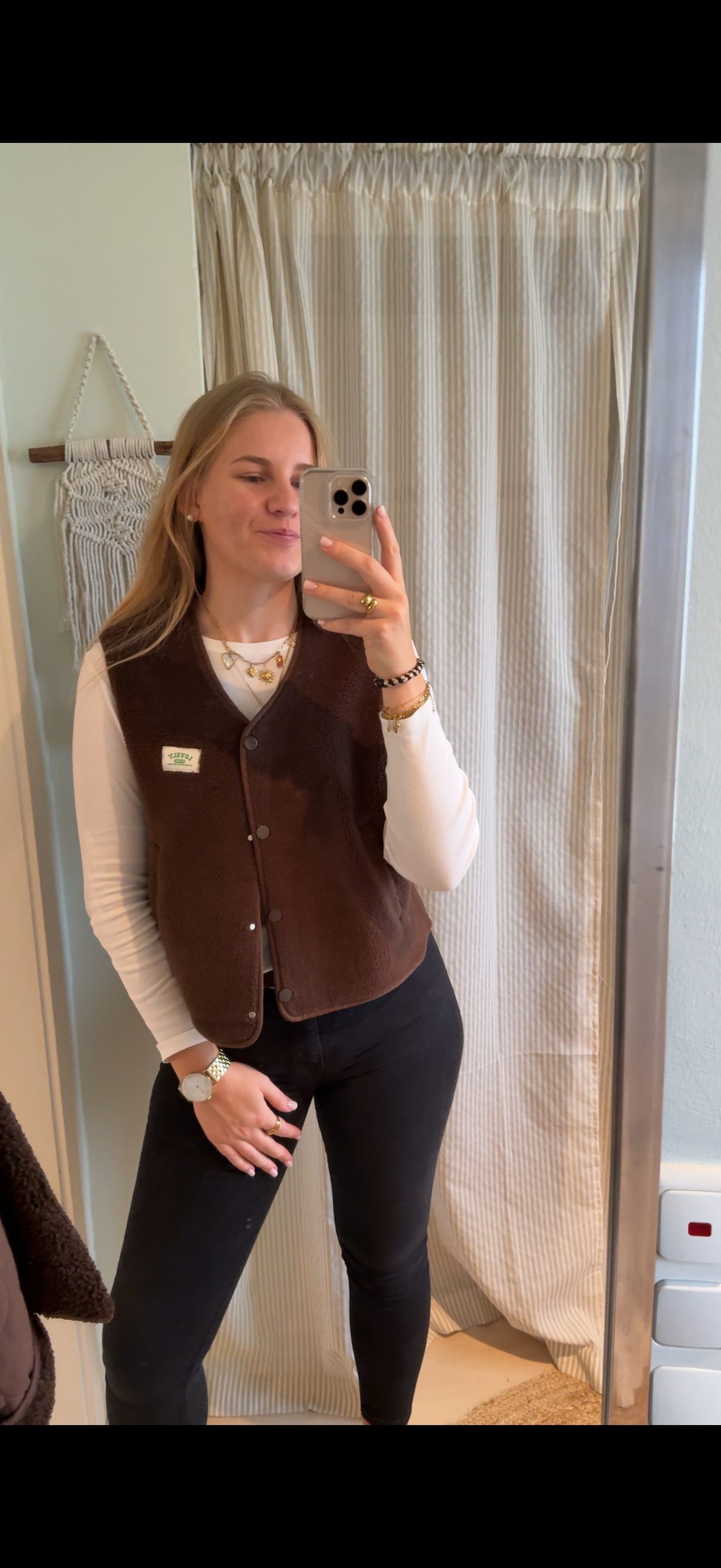 Sehr hochwertige Teddyweste mit coolem Patch. Perfekt für die Tage an denen es zu kalt für ein einfaches Longsleeve aber zu kalt für eine Strickjacke ist. So bleibt der Rücken schön warm und man sieht direkt angezogen aus.